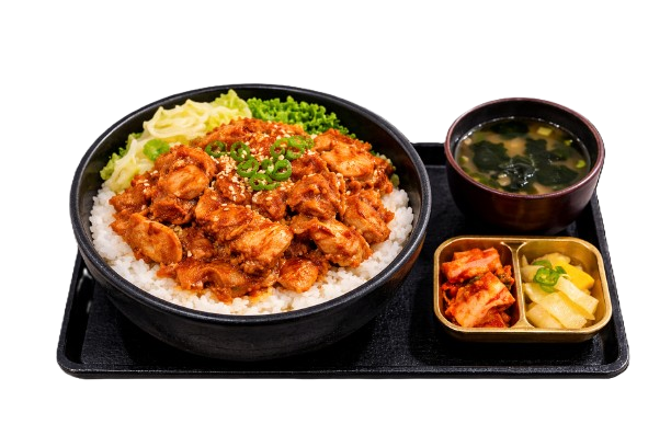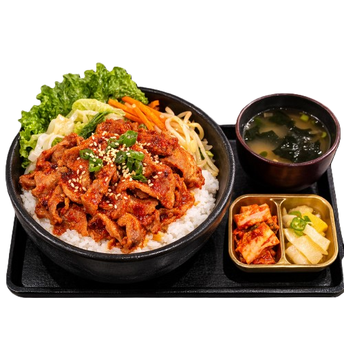 Our Korean rice dishes are hearty meals served with steamed rice and a variety of options such as bulgogi pork, chicken in sauce, or Korean curry.