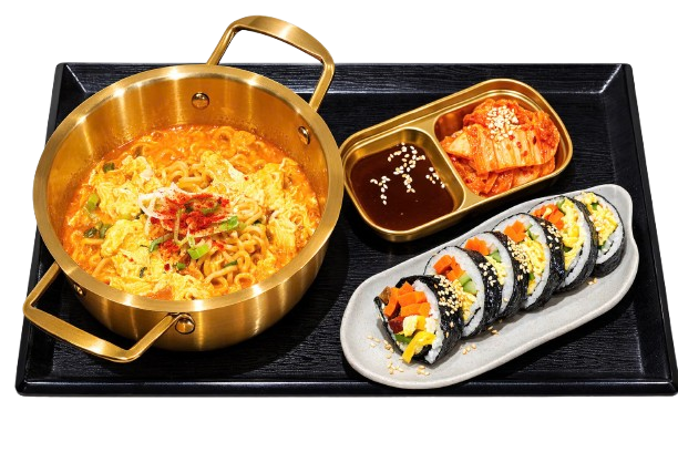 Our menu features popular Korean dishes including kimbap, bibimbap, tteokbokki, Korean fried chicken, Korean ramen (ramyeon), Korean BBQ-style sets, and hotteok.