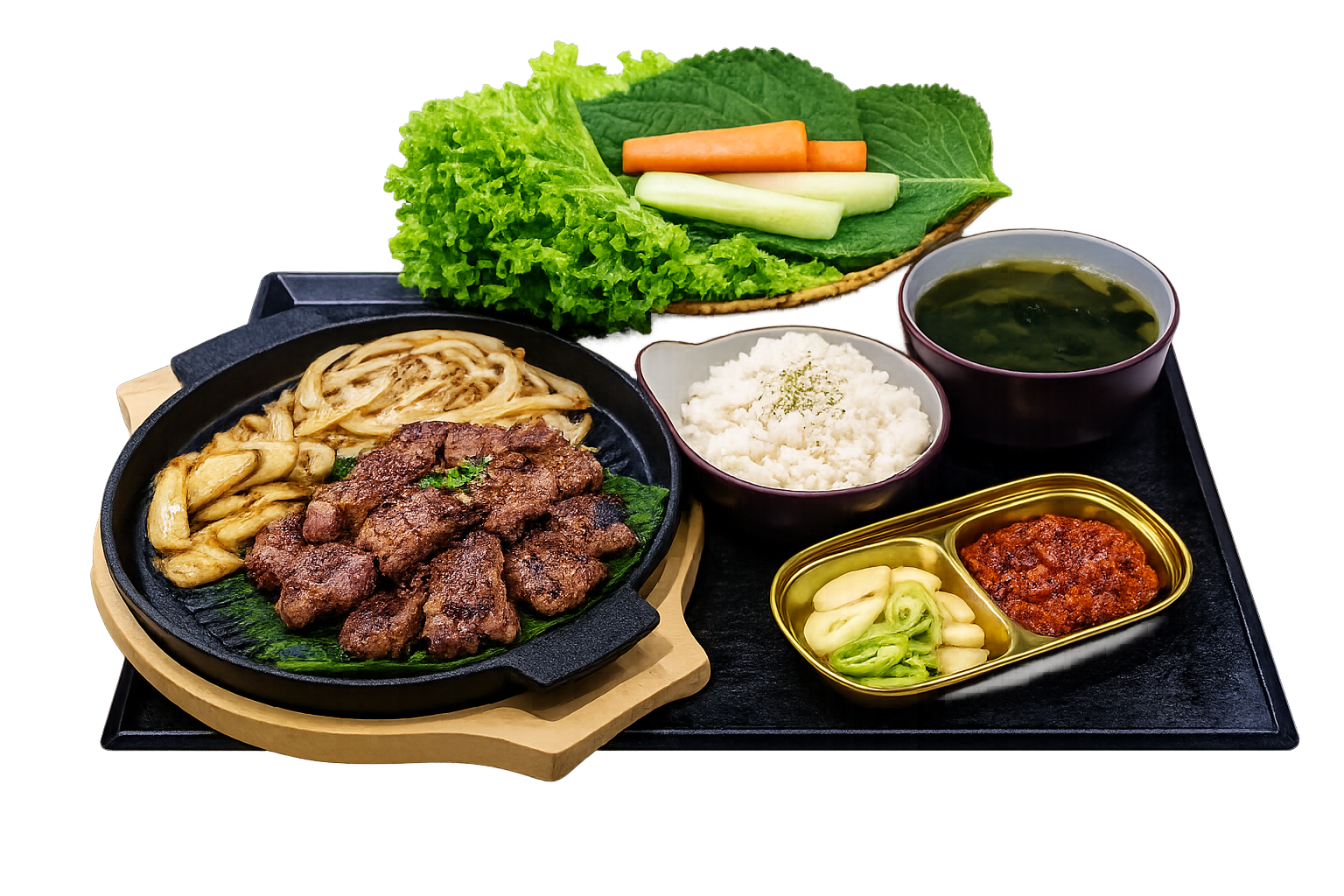 Our sets includes bulgogi (stir-fried beef cooked in authentic Korean bulgogi sauce) as well as grilled pork and beef BBQ sets. Each set is served with rice, seaweed soup, fresh vegetables, and traditional Korean side dishes.